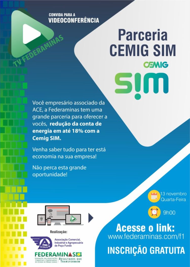 Atenção, associados!!! No próximo dia 13 (quarta-feira), a partir das 9 horas, a Federaminas, com o apoio da Aciapf (Associação Comercial, Industrial e Agropecuária de Poço Fundo), promoverá uma vídeo-conferência…